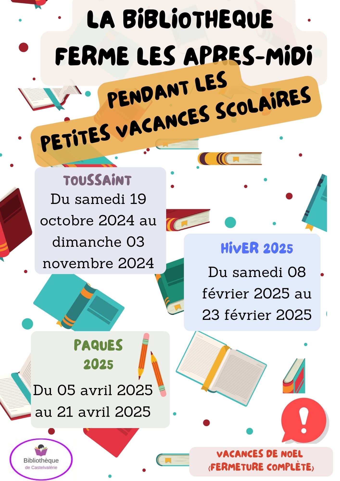 FERMETURE BIBLIOTHEQUE PETITES VACANCES SCOLAIRES